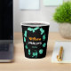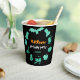 Verde y naranja, en negro, tazas de papel de la fiesta de cumpleaños con motivos ilustrados de Halloween. Personalizar el nombre, la fecha y otro texto que desee.