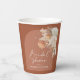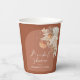 Fiesta de boda de despedida de soltera moderna bohemio pampas hierba terracota día de la boda taza de papel. Hermosas acuarelas florales impresas a mano y texto de escritura moderna. Diseño moderno de tendencia.
