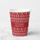 Un vintage árbol de Navidad, copo de nieve y patrón de suéter de argyle de reno en rojo alrededor de tu texto personalizado en una taza de papel de fiesta de vacaciones. Personalizar tus vacaciones con estas hermosas y nostálgicas copas de estilo antiguo.