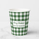 Navidades de cheques de búfalo verde y blanco tazas de papel fiesta presentan un rectángulo blanco en el centro que dice "Feliz Navidad" en un guion verde oscuro con tu nombre debajo en un moderno tipo de letra sans serif. Perfecto para una fiesta de vacaciones. Personalízalo con tu nombre y texto en la barra lateral. Para ver el diseño Green and White Gingham Plaid Pattern sobre la coordinación de los suministros de los fiestas, haga clic en el enlace de la colección Rocklawn Arts. Imagen creada digitalmente. Copyright ©Claire E. Skinner. Todos Los Derechos Reservados.