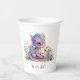 Los amantes de la fantasía, el género de los bebés, revelan tazas de papel, con gráficos dulces de un bebé dragón azul y rosa colorido, con flores silvestres coloridas, sobre un fondo blanco. Personalice el texto del personalizado para que se ajuste a sus necesidades.