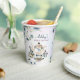 Tazas de papel personalizadas con plantilla personalizada para fiesta de té de shower nupcial con flores de acuarela púrpura azul y monograma decoración de mesa de shower nupcial tazas de papel impresas