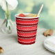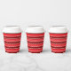 Deguste las bebidas calientes y festivas en estas audaces tazas de papel de diseño gráfico con rayas de vieiras rojas y blancas en un rico fondo rojo burdeos. El texto blanco es fácilmente personalizado para marcar una ocasión especial o celebración o puede ser borrado completamente para un diseño que se puede usar año tras año.