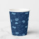 Celebra una graduación con esta taza festiva de papel azul marino con gorras, estrellas y frases de felicitación.