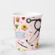 Enfermeras o médicos de tazas de fiesta para graduación o evento de apreciación de la oficina, con suministros médicos y diseño de flores en un fondo rosado.