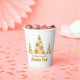 Una copa de papel fiesta de Navidades de guión dorado de moda con tu nombre familiar bajo hermosos árboles hechos de copos de nieve dorados sobre Feliz Navidad. Decoración de moda y diseño artístico.