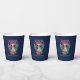 Vasos De Papel Fiesta Navideña Floral Reno Rojo Azul de Navidad