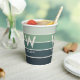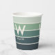 Las tazas de papel fiesta de moda con bandas anchas en colores de gradiente verde silencioso inspirados en la naturaleza. Monograma centrado grande y nombre asociado. Tipografía minimalista simple y limpia. Totalmente personalizable.