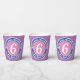 Conmemorar un sexto cumpleaños con tazas de papel decoradas con el nombre del niño, así como su edad y fecha de nacimiento.