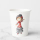Cubos de papel cortos con el ilustracion de una chica de pelo oscuro bailando con su fantástico rojo brillante con el vestido de sevillana punto de polka blanco. Su cabello está atado en un nudo superior con una flor carmín. Personalice el vaso con su propio nombre o mensaje. Ilustrado y diseñado por Patricia Álvarez.