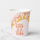 El Five inspirado en Retro es un Vibe Groovy tazas de papel de 5º cumpleaños con daisies de estilo de los años 70 y fuentes y colores boho.