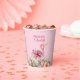 Un flamenco rosa exótico con flores rosadas y amarillas exóticas y hojas sobre fondo rosa claro. Monograma opcional