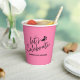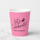 Añade un toque tropical de color a la decoración de tu fiesta de cumpleaños con estas tazas de papel rosa de bonito que presentan la tipografía "celebremos" con flamingo negro y silueta de cóctel. Perfecto para las celebraciones de playa, tropical, fiesta de piscina y verano.