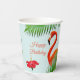 Vasos De Papel Flamingos, hibiscos y hojas de palma en azul claro