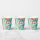 Copas Luau de colores vivos con flamingo y palmera. Verde turquesa, rosa y azul.