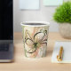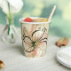 En tonos suaves de rosa, marrón, verde oscuro y negro, este original diseño floral muy estilizado de Leslie Sigal Javorek, en este vaso de papel evoca sensaciones de movimiento, energía y magia.