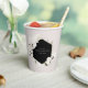 Vasos de papel para ducha de novia bohemio elegante. Flores de acuarela blanca y delicado follaje verde marco geométrico negro.