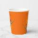 Vasos de papel con flores de ave del paraíso. Vasos brillantes naranjas con tema tropical tienen un lugar para nombres u otro texto en la parte superior. La letra es en escritura moderna en azul oscuro. El mismo texto se imprimirá en ambos lados de los vasos. Personalice para una despedida de soltera, fiesta de compromiso o utilice en una recepción de boda informal con un tema hawaiano o tropical.