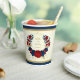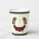 Vasos De Papel Flores románticas rojo oscuro y azul marino dorado