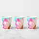 Estas tazas de papel tienen una flor rosa bonito sobre ellas.