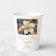 Flores Tropicales Elegantes, Sr. Floral Boda Cups De Papel. Celebre su día especial con estas elegantes tazas tropicales de boda con vibrantes obras de arte botánico. El diseño muestra una impresionante flor tropical crema y naranja rodeada de un frondoso follaje verde azulado y naranja, creando un tono cálido y acogedor para su evento. Ideal para bodas de verano, de playa o de destino. Personalizable con tus nombres, fecha y detalles del lugar, prepara el escenario para una celebración inolvidable. Personalizar el texto y crea unas tazas únicas para un día muy especial de la pareja.