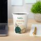 Hermosa taza de papel de otoño con flores verde esmeralda y beige dorado con hojas verdes. PARA VER MÁS PRODUCTOS COINCIDENTES, haga clic en la colección anterior o contácteme