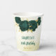 Vasos De Papel flores verde esmeralda y hojas doradas