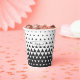 Las formas geométricas de patrones en blanco y negro diseñan tazas de papel para agregar un nombre haciendo clic en el botón "Personalizar" situado encima