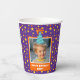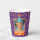 Celebra el cumpleaños de tu pequeña con una taza de papel morado personalizado festivo que incluye una divertida exhibición de estrellas y círculos naranjas y amarillos. Personalice este diseño brillante con una foto de su pequeño chica o niño de cumpleaños, con un alegre gorra de cumpleaños azul. Añada un toque especial con un saludo personalizado, como "¡Feliz cumpleaños, nombre del niño!". Esta capilla de papel es una adición perfecta a cualquier fiesta de cumpleaños de un niño.