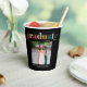 Celebra el graduado en su fiesta con esta divertida taza de papel personalizada. El diseño presenta tu foto de grado favorita con una tipografía audaz inspirada en una paleta de colores retro. Personalice con su nombre y escuela