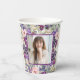 Vasos De Papel Foto morada de cumpleaños con florido rosado de Ru