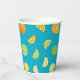 Estas tazas de papel presentan limones, limones y naranjas con un fondo azul verde azulado. Perfecto para las personas que quieren agregar un pop a sus vidas cotidianas. Ideal para picnics, cenas y fiestas.