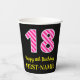 Vasos De Papel Fun Pink Stripes "18": Feliz cumpleaños 18 + nombr