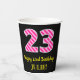 Vasos De Papel Fun Pink Stripes "23": Feliz cumpleaños número 23