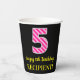 Vasos De Papel Fun Pink Stripes "5": Feliz quinto cumpleaños + no