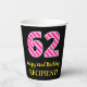 Vasos De Papel Fun Pink Stripes "62": Feliz cumpleaños número 62