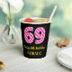 Vasos De Papel Fun Pink Stripes "69": Feliz cumpleaños número 69