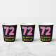 Este alegre diseño de pegatina cuadrado con temática de cumpleaños cuenta con un gran número "72", con rayas rosa claro y rosa oscuro. También incluye el mensaje "Feliz cumpleaños número 72", más un nombre personalizado. El fondo es negro de color. Se pueden usar vasos de papel como este para celebrar el 72 cumpleaños de alguien. [~Z0000580]