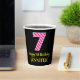 Este alegre diseño de pegatina cuadrado con temática de cumpleaños cuenta con un gran número "7", con rayas rosa claro y rosa oscuro. También incluye el mensaje "Feliz séptimo cumpleaños", más un nombre personalizado. El fondo es negro de color. Alegres tazas de papel como esta pueden ser divertidas de usar en una fiesta de cumpleaños que se celebra para alguien que está celebrando su séptimo cumpleaños. [~Z0000580]