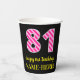 Vasos De Papel Fun Pink Stripes "81": Feliz cumpleaños número 81