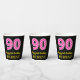 Vasos De Papel Fun Pink Stripes "90": Feliz cumpleaños 90 + Nombr