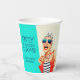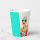 Organizar una fiesta de cumpleaños escandalosamente divertida y única para una fabulosa mujer que celebra su cumpleaños número 50 con este retro diseño de la copa de papel de la fiesta de cumpleaños número 50. El diseño presenta a una elegante mujer kitsch con gafas de sol rayadas y turbante de pelo con una bolsa de puntito de polka y toalla rayada, que se desmorona en su actitud. El humor se lleva a cabo con el título en negrita "CINCUENTA ES LA NUEVA F-BOMB". Personalice el nombre con el fabuloso Chica de cumpleaños. La combinación de colores retro, como el agua, el beige, la marina y el rojo, contribuye a la diversión de este diseño.