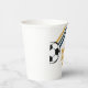 ¡Vamos a patearlo! Retro Soccer Copas de papel de cumpleaños con rayas amarillas, verdes y azul marino.