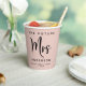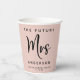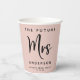 Moderno y sencillo "The Future Mrs.", tazas de papel rosa y ruidosas personalizadas para su ducha de novia. La "señora" está escrita en un gran guión elegante, y usted puede personalizar con su futuro nombre de matrimonio, nombre y fecha de ducha.