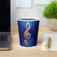El arrecife G o Treble en oro, con una rociada de pequeños apuntes alrededor, imagen creada con inteligencia artificial. Exprese la esencia musical de usted con vasos de papel inundados de notación musical.