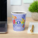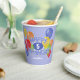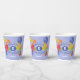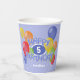 Estas divertidas y coloridas tazas de papel para fiestas de cumpleaños incluyen el mensaje "Feliz Cumpleaños", escrito en galletas esmeriladas azules y realistas, rodeadas de globos multicolores - la edad y el nombre del niño se pueden personalizar - fondo es azul pálido personalizable - de katz_d_zynes