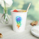 Grandes medusas de azulejo brillantes, de dibujos artísticos, con largos tentáculos en blanco, pintadas con fondo multicolor de acuarela. Mariscas arcoiris.