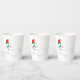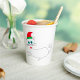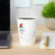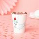 Un gato navidad que es un gato blanco con un sombrero de Santa. Este diseño parece realmente efectivo en estas tazas de papel