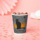 Taza para fiesta de Halloween con un clásico gato negro sentado junto a calabazas sobre un fondo gris con acentos de telaraña. Una opción festiva para reuniones de octubre, fiestas de truco o trato, o celebraciones espeluznantes. Perfecto para agregar un toque divertido de temporada a bebidas y mesas de fiesta.
