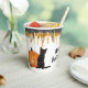 Esta divertida copa de papel de la fiesta de Halloween muestra a un gato negro sentado al lado de una brillante linterna de Jack o'. En la parte superior de la taza hay goteo purpurinoso falso negro y naranja. La imagen del gato y el farol de Jack o se repiten dos veces, con un texto negro entre ambos que dice "Feliz Halloween". El texto puede cambiarse fácilmente a cualquier otra cosa que prefiera. *El purpurina es simulado; no se utiliza ningún purpurina real en el producto.